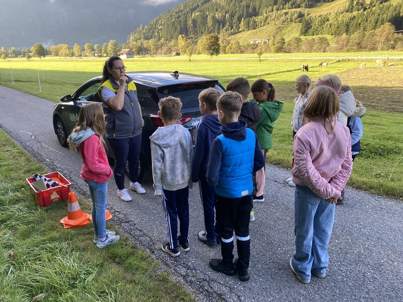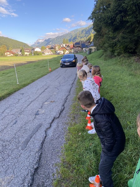 Sehr spannend war für uns, als wir selbst im Graagassl das Auto, das mit 30 kmh unterwegs war, bremsen durften.