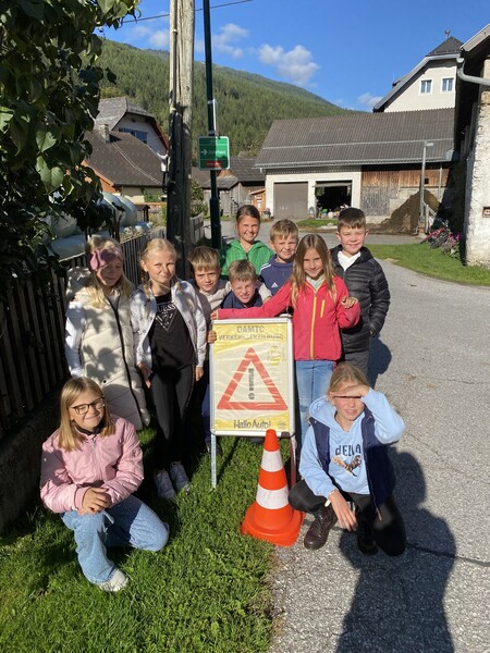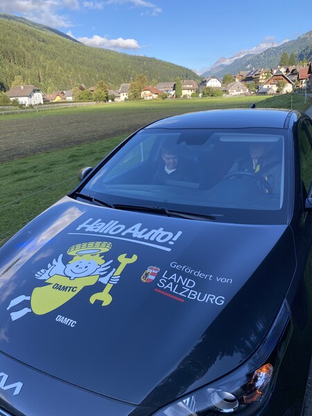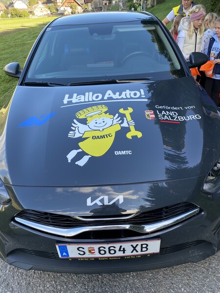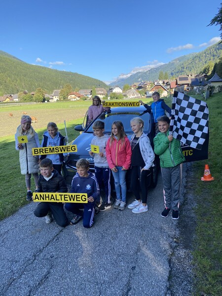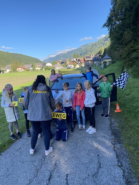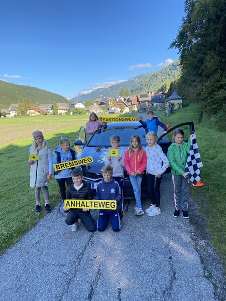 Bei der Aktion "Hallo Auto" durften die Kinder der 3. und 4.Stufe erfahren, wie sich ein Auto beim Bremsen verhält.